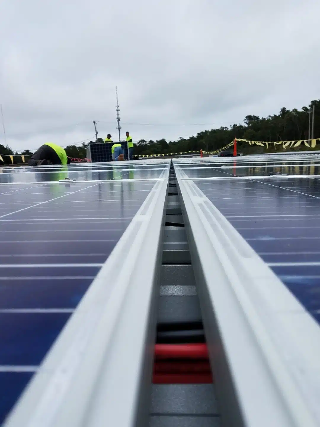 - DC wiring and rough-in: Electricians run conduit and wiring across the racking system to prepare for the panels, ensuring all wires are managed and protected from the elements.