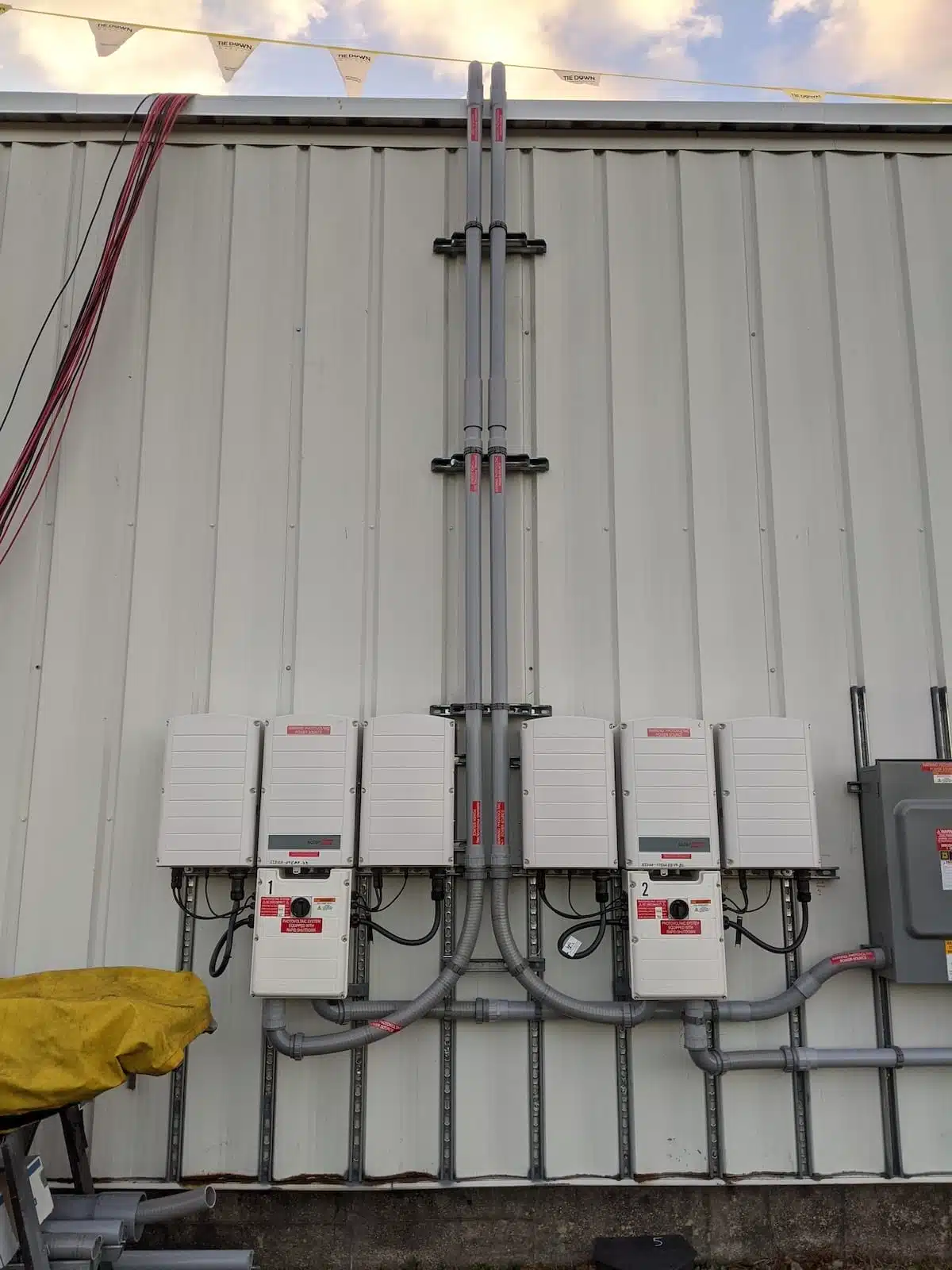 - Inverter and AC Electrical Work: Inverters are mounted and connected to the solar array’s DC output. Simultaneously, electricians install the AC conduit connecting the inverters to the building’s main switchgear or utility connection point.
